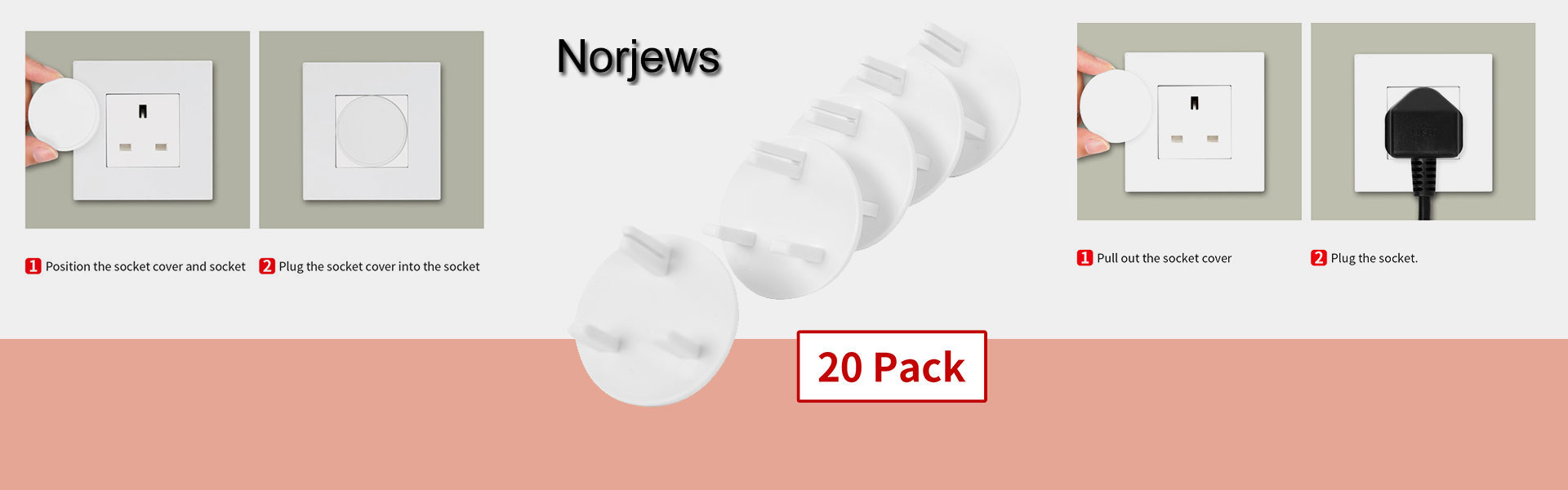 • <p>Norjews Baby Home Safety Socket Covers Child Proof Plug Socket Protectors / Guards (20 Packs)</p>